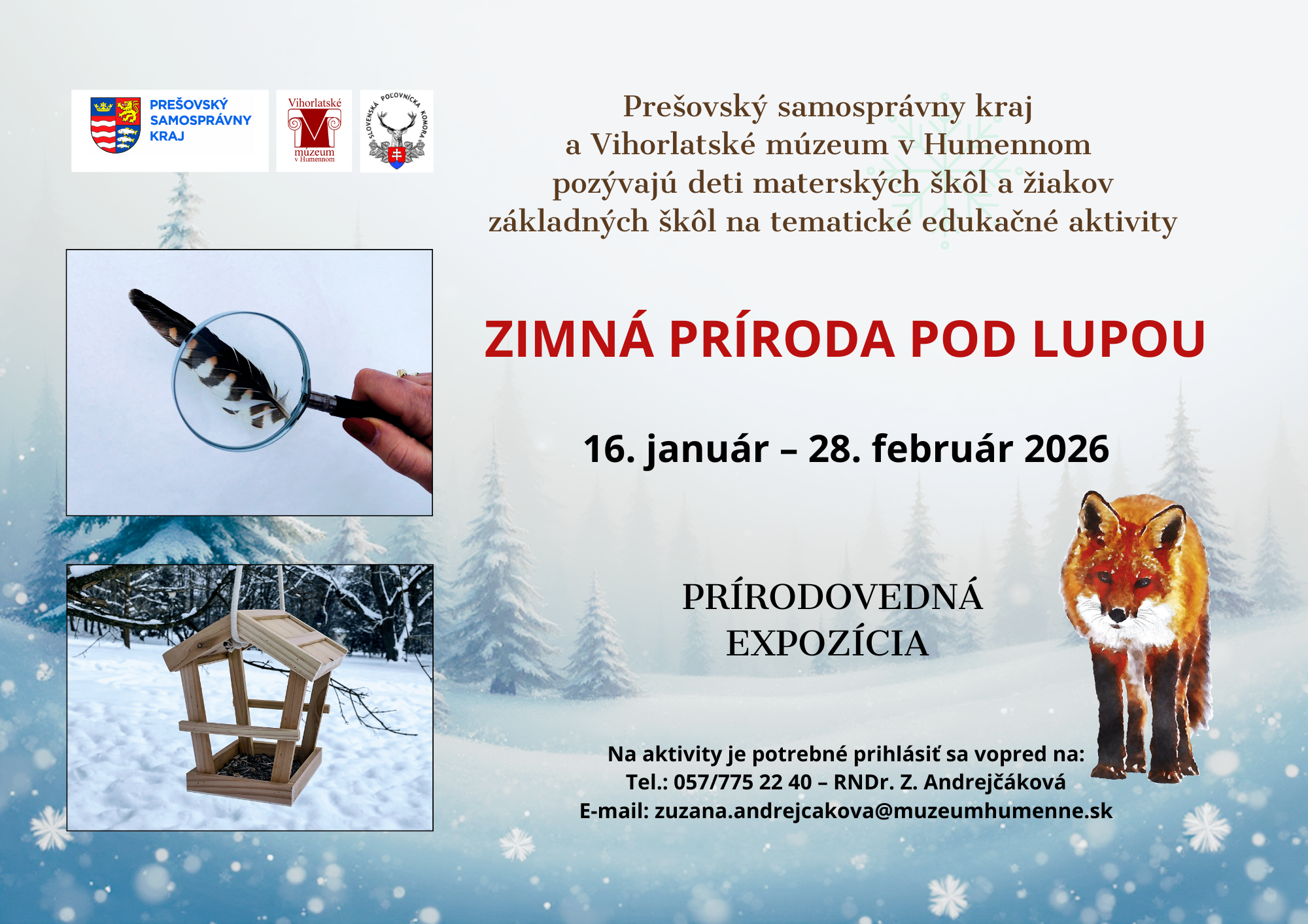 ZIMNÁ PRÍRODA POD LUPOU v termíne od 16. januára do 28. februára 2026 v prírodovednej expozícii Vihorlatského múzea v Humennom.